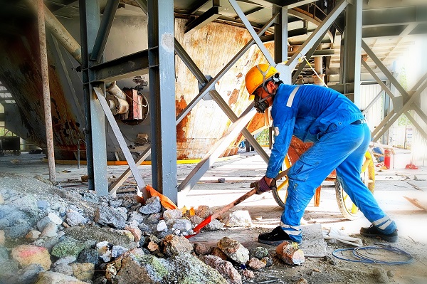 8月2日,達(dá)州海螺窯檢修步入尾聲,巡檢工馮圣超正在對(duì)檢修過程更換的澆注料等進(jìn)行清理。(段益平/攝)