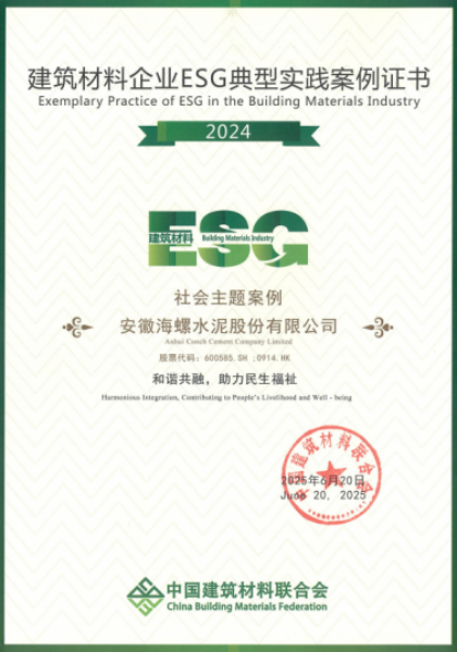 論壇發(fā)布了建筑材料行業(yè)ESG評(píng)級(jí),該評(píng)級(jí)融合國(guó)內(nèi)外主流框架,確定13項(xiàng)行業(yè)議題,明確122項(xiàng)關(guān)鍵績(jī)效指標(biāo),科學(xué)衡量公司發(fā)展韌性。本次評(píng)級(jí)覆蓋131家建筑材料公司,共15家公司榮獲A+評(píng)級(jí)。同時(shí)發(fā)布了2024年度建筑材料行業(yè)ESG典型實(shí)踐案例,涵蓋環(huán)境、社會(huì)、公司治理以及氣候變化4項(xiàng)專題下各5個(gè)實(shí)踐案例。海螺水泥憑借卓越的ESG治理和實(shí)踐,榮獲建筑材料行業(yè)A+評(píng)級(jí),并入選環(huán)境、社會(huì)、治理3項(xiàng)專題實(shí)踐案例。此外,公司應(yīng)邀在論壇上進(jìn)行了以《踐行“雙碳”戰(zhàn)略,引領(lǐng)綠色發(fā)展》為主題的ESG實(shí)踐經(jīng)驗(yàn)分享。