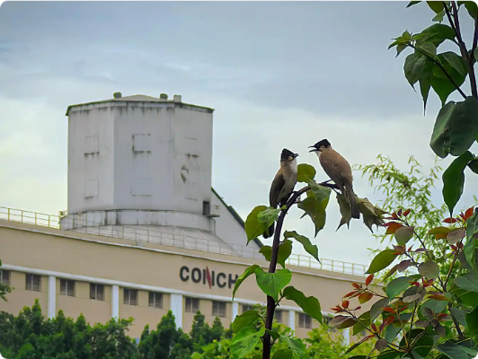 在重慶海螺水泥有限責(zé)任公司,鳥(niǎo)兒在廠區(qū)內(nèi)的綠植上嬉戲。新華社記者 唐奕 攝