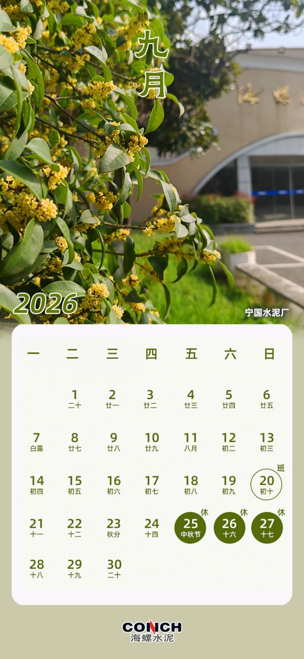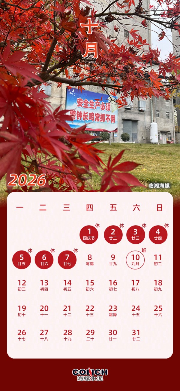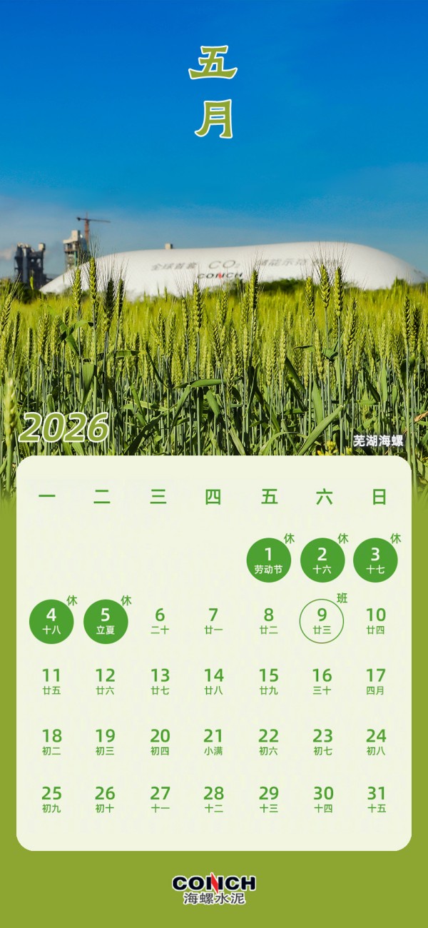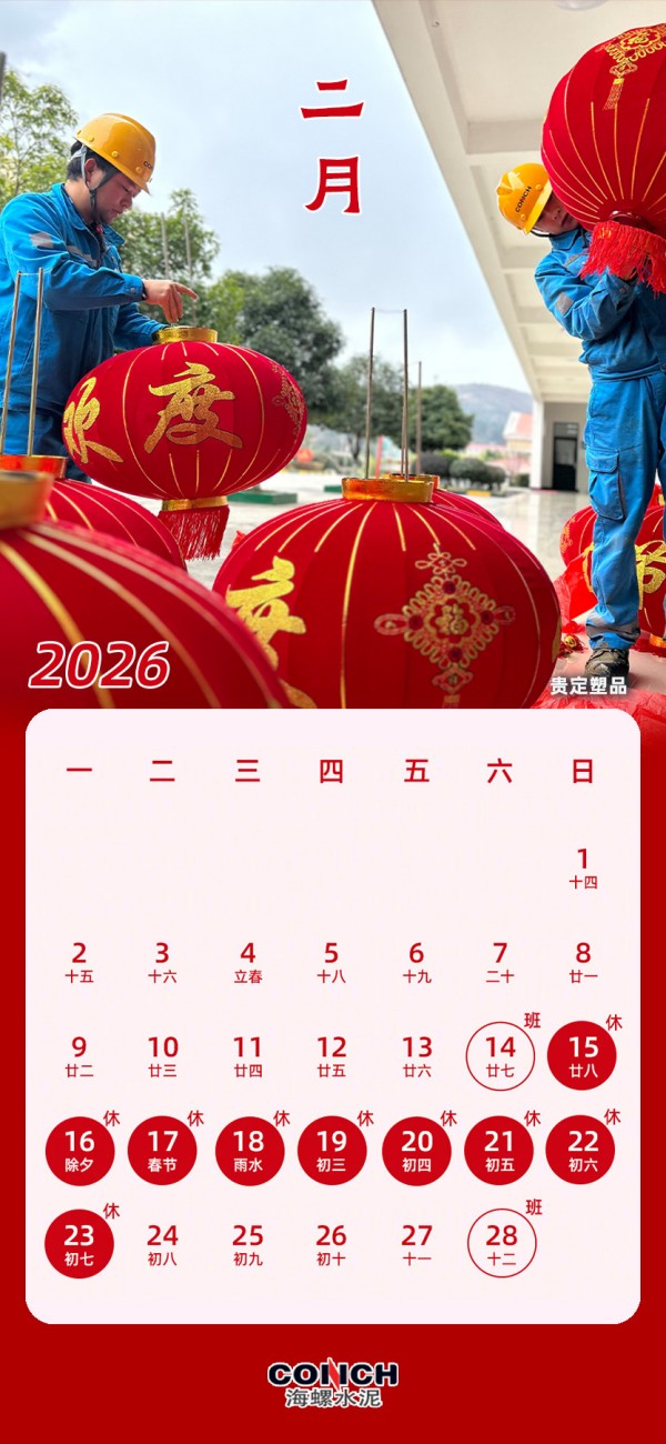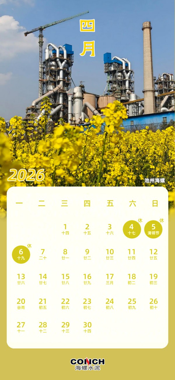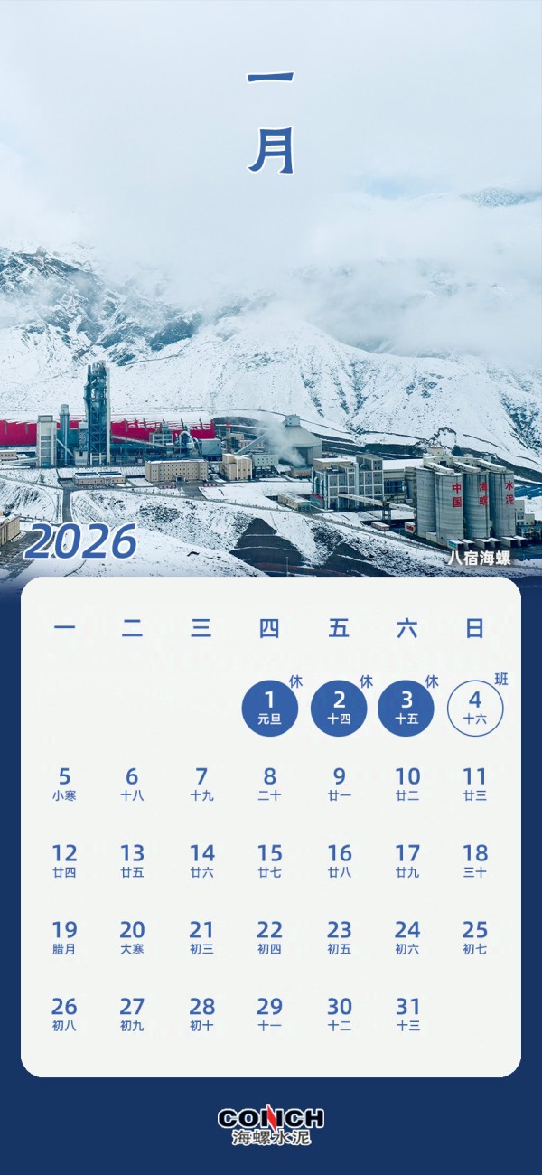 您有一份海螺水泥2026專屬日歷