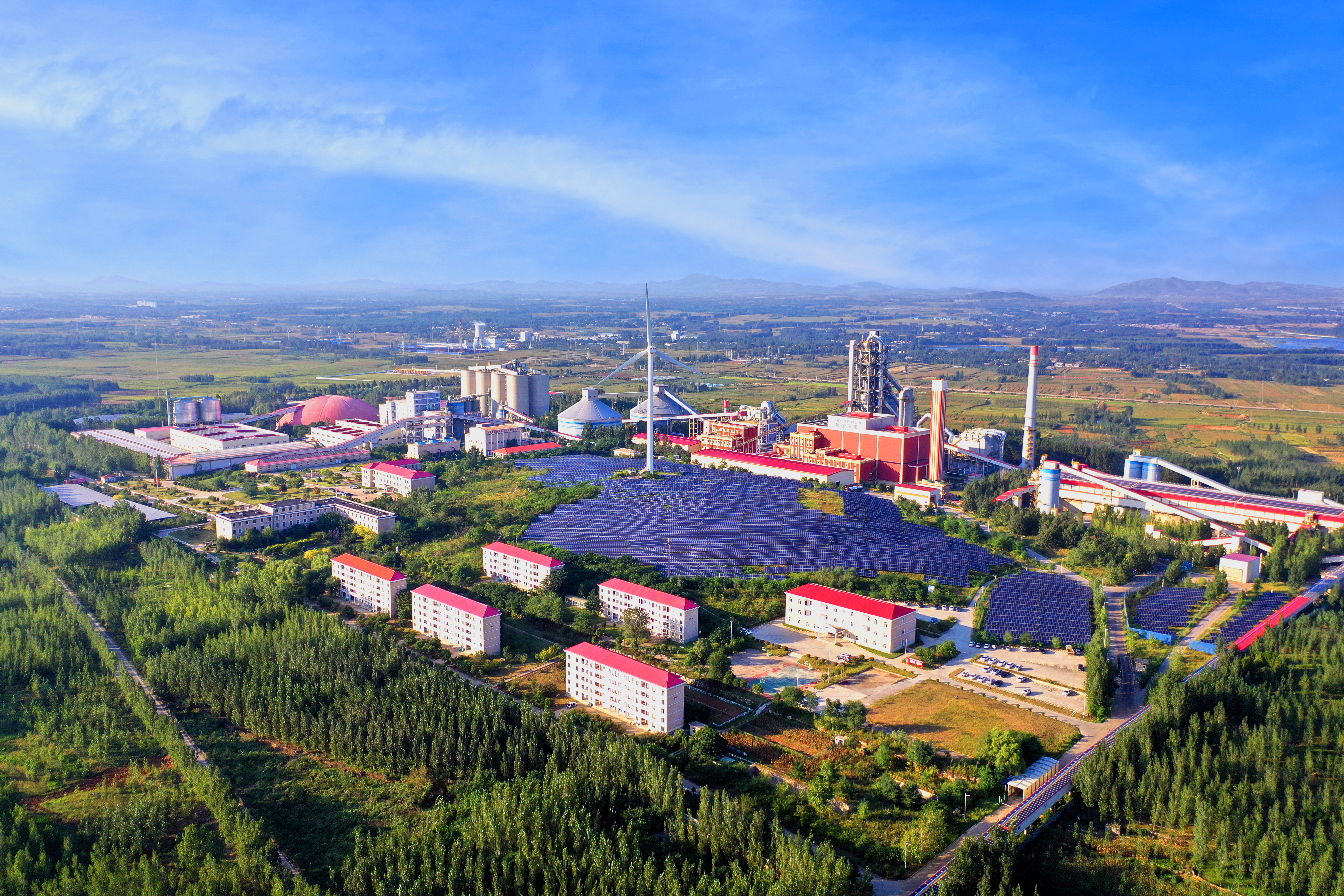 公司致力于打造節(jié)能減排、清潔生產(chǎn)典范,熟料線配套建設(shè)2套帶輥壓機(jī)水泥粉磨系統(tǒng),涵蓋9MW余熱發(fā)電、9MW垃圾發(fā)電、16.96MW光伏發(fā)電、11.5MW風(fēng)力發(fā)電配套10MW/20MWh儲能、9MW生物質(zhì)氣化補(bǔ)充熱能發(fā)電,同時配套年處置10萬噸固危廢協(xié)同處置項(xiàng)目,成功實(shí)現(xiàn)企業(yè)“零外購電”。