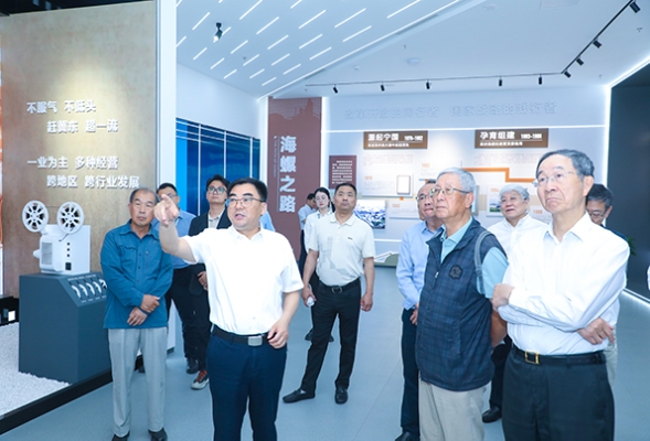 在海螺集團(tuán)展廳,一件件展品、一幅幅圖片、一組組數(shù)據(jù),生動(dòng)勾勒出海螺集團(tuán)從小到大、由弱變強(qiáng)的奮進(jìn)畫卷。代表團(tuán)一行不時(shí)駐足詢問,深入了解海螺集團(tuán)在水泥制造、新能源、新材料、環(huán)保、數(shù)字經(jīng)濟(jì)、現(xiàn)代服務(wù)貿(mào)易等領(lǐng)域的多元化布局以及取得的豐碩成果。