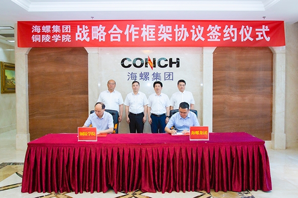 2025年8月19日,海螺集團(tuán)與銅陵學(xué)院合作協(xié)議簽約儀式在集團(tuán)總部舉行。海螺集團(tuán)黨委書記、董事長楊軍,銅陵學(xué)院黨委書記吳照明出席簽約儀式。海螺集團(tuán)副總經(jīng)理李群峰,銅陵學(xué)院副校長夏美武代表雙方簽署協(xié)議。海螺集團(tuán)副總經(jīng)理丁鋒,銅陵學(xué)院人事處處長王亮等參加簽約儀式?!?/span>