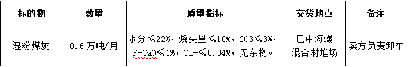 根據(jù)巴中海螺生產(chǎn)經(jīng)營需求,現(xiàn)對水泥生產(chǎn)用濕粉煤灰采購業(yè)務進行公開招標,為體現(xiàn)公平、公正、公開、透明的原則,現(xiàn)將招標相關事宜公告如下: