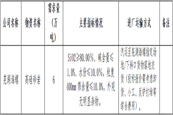 根據(jù)生產需求,本著“公開、公平、公正”的原則,蕪湖海螺供應處擬對外購砂巖進行公開招標,歡迎具備條件的單位參加,現(xiàn)將招標相關事宜公告如下: