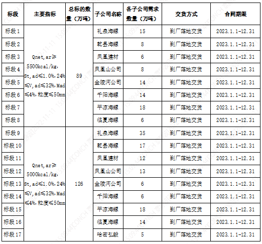 根據2023年陜甘區(qū)域各子公司煤炭需求,為保障各公司生產,擬對2023年煤炭采購進行公開招標,現將招標相關事宜公告如下: