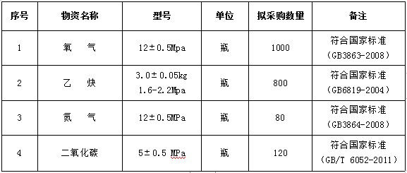 3.標(biāo)的質(zhì)量及使用要求:氣體質(zhì)量須符合國家質(zhì)量標(biāo)準(zhǔn)。