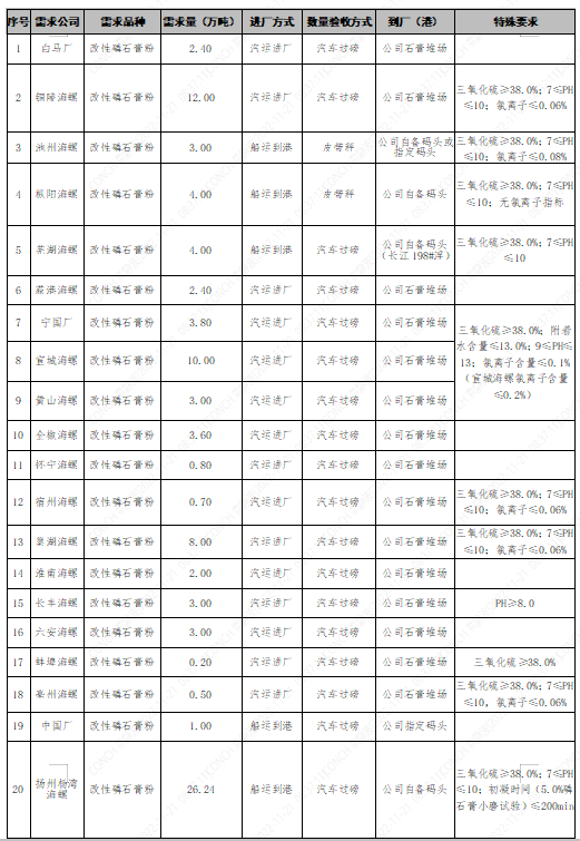 備注:需求單位共43家,需求量共172.07萬(wàn)噸。