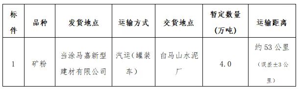2.標(biāo)段運(yùn)輸起止:當(dāng)涂馬嘉新型建材有限公司礦粉發(fā)運(yùn)點(diǎn)至白馬山水泥廠指定卸貨地點(diǎn)。