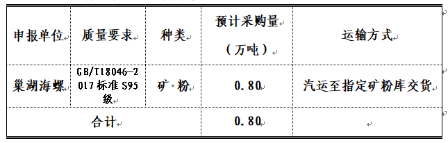 3.計(jì)劃采購數(shù)量:暫定采購總量0.80萬噸(具體使用數(shù)量根據(jù)招標(biāo)人實(shí)際需求為準(zhǔn))。