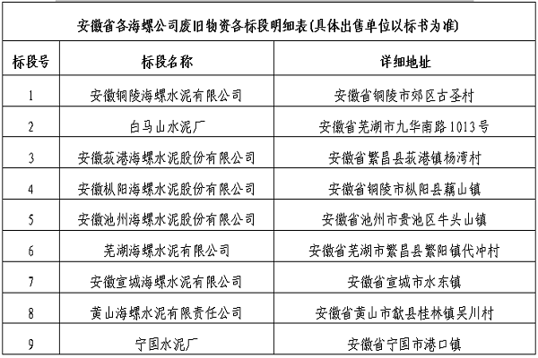 2.出售數(shù)量:以安徽省內(nèi)區(qū)域各海螺公司實際過磅及點數(shù)數(shù)量為準。