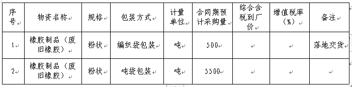 3.投標申請人需提供貨源相關(guān)合法證明(包含但不限于貨源地廠家環(huán)評備案材料、買賣合同等能證明物料可合理利用的材料),確保貨源合法合規(guī),我公司僅接收中標渠道合法取得的橡膠制品(廢舊橡膠),投標人不得弄虛作假。