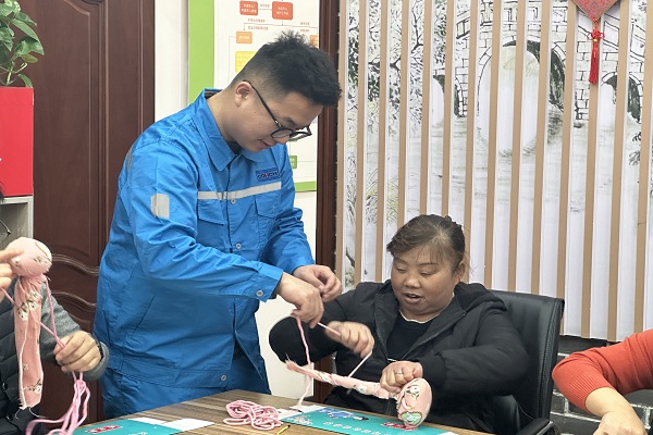 在艾草錘制作環(huán)節(jié),銀發(fā)與青春的身影交相輝映。志愿者采取“1+1”結(jié)對服務(wù)模式一邊介紹,一邊示范制作步驟。老人們興致勃勃地跟隨志愿者一起將艾草填充布袋,用花布包裹裝飾,并用棉線綁扎錘柄。78歲的嚴(yán)奶奶手持艾草錘欣喜表示:“這錘子好看又實用,孩子們教得真耐心。”