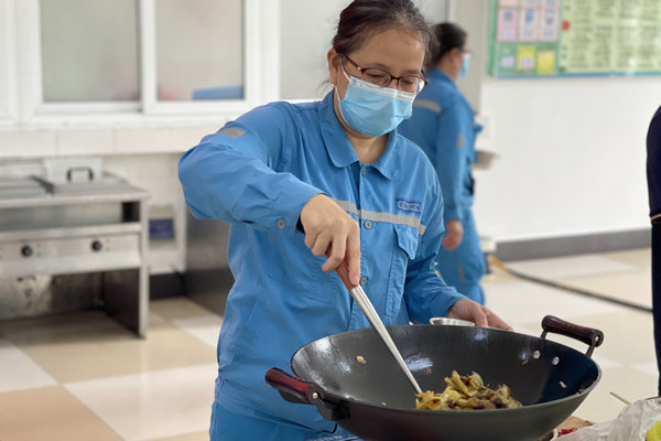 與此同時,來自各部門的員工隊伍也迅速“接棒”。團隊成員分工明確、配合默契——有人刀工利落嫻熟;有人全神貫注調(diào)味烹飪,讓酸菜魚的鮮香、三生三世連緣湯的醇厚在鍋中慢慢綻放;還有人化身擺盤高手,將鳳凰展彩堂、財源滾滾來等菜品精心裝點。不一會兒,食堂里便升騰起裊裊煙火氣,混合著糖醋、麻辣、鮮香等多重香味,將比賽氛圍推向高潮。