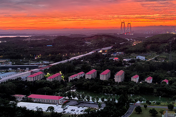 藍天白云悠然鋪展,公司萬噸線宿舍樓與蔥郁綠植相映成趣,行人于開闊道路間漫步,在晴朗日光里勾勒出一幅閑適生動的生活畫卷。