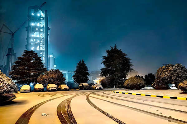 雪花紛紛揚揚地飄落,頃刻間化作了一個銀裝素裹的世界。雪花覆蓋在設(shè)備和水泥庫上,仿佛為它們穿上了一件厚厚的白色棉襖。