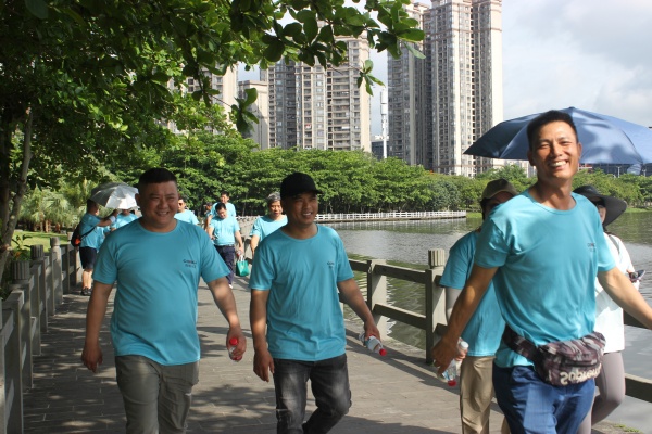 活動當日,陽光透過薄薄的云層灑下,給濕地公園披上了一層金色的光輝。員工們身著輕便的運動裝,沿著蜿蜒的環(huán)湖碧道穩(wěn)步前行。一路上,微風輕拂,帶著湖水的清新和花草的芬芳,讓人心曠神怡。起初,大家步伐輕快,歡聲笑語回蕩在濕地公園的上空。隨著路程的不斷推進,大家的體力逐漸消耗,腳步也漸漸沉重起來,有人開始喘著粗氣,額頭上冒出了細密的汗珠。但團隊的凝聚力在此刻得到了充分體現(xiàn),部門之間相互鼓勵,同事之間彼此扶持,有隊員想要放棄時,旁邊的伙伴會拍拍他的肩膀,堅定地說:“再堅持一下,我們一定能到達終點!”那簡單的話語,卻蘊含著無窮的力量,大家手挽手、肩并肩,一步一步地朝著終點邁進。