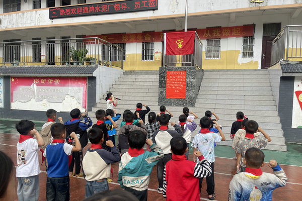 紅旗漫卷,誓言錚錚。慰問團隊與全校師生共同參與了莊嚴的升旗儀式。當(dāng)雄壯的國歌奏響,五星紅旗在全體肅立的目光中冉冉升向晴空,熾熱的愛國情懷在每個人心中激蕩。隨后,一個意義非凡的環(huán)節(jié)到來:一批新隊員在隊旗下光榮加入了中國少年先鋒隊。凌云縣總工會江榮會副主席與凌云通鴻工會主席鄭有為等代表緩步上前,俯身為這些新隊員仔細整理衣領(lǐng),鄭重地系上鮮艷的紅領(lǐng)巾。這抹革命先烈熱血染就的鮮紅,此刻佩戴在胸前,更象征著責(zé)任與榮光的無聲傳遞。