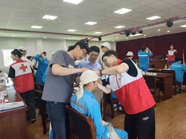 象山海螺 曹祥明:這次培訓(xùn)的創(chuàng)傷救護(hù)實操讓我收獲頗豐。若發(fā)現(xiàn)同事手臂被劃傷大量出血,我如今能迅速反應(yīng):立即用敷料或干凈的布料覆蓋在傷口上,用手直接持續(xù)用力壓迫傷口止血(避免盲目拔出異物),抬高傷肢減少血流;持續(xù)加壓包扎后,如果敷料被血液浸透,不要更換,再取敷料覆蓋在原有的敷料上繼續(xù)壓迫止血。日常預(yù)防同樣關(guān)鍵:規(guī)范操作設(shè)備保持作業(yè)環(huán)境整潔避免尖銳物暴露、正確佩戴勞保用品,這些細(xì)節(jié)能有效減少創(chuàng)傷風(fēng)險??此坪唵蔚目噹Юp繞,實則是守護(hù)生命的技能——當(dāng)講師演示“8字包扎法”固定關(guān)節(jié)時,我深刻體會到"人人會急救"對企業(yè)安全的意義。我會將這份技能轉(zhuǎn)化為行動,讓意外來臨時不再手足無措。