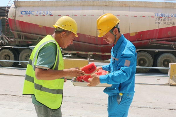 慰問組先后前往窯中廣場、礦山爆破區(qū)、水泥發(fā)運等高溫作業(yè)點,將精心準備的鹽汽水、綠豆湯、西瓜等防暑降溫物資送到員工手中,確保一線員工在高溫環(huán)境下能夠及時補充水分、預(yù)防中暑。期間公司安全環(huán)保處還現(xiàn)場開展了高溫作業(yè)安全培訓(xùn)、夏季中暑應(yīng)急演練,重點強調(diào)“避開午間高溫時段”“輪換作業(yè)”“穿戴防護裝備”等事項,設(shè)備保全處對生產(chǎn)現(xiàn)場的所有空調(diào)、風(fēng)扇、通風(fēng)設(shè)備進行全面檢修,確保降溫設(shè)施正常運行。辦公室廣泛聽取一線員工對防暑降溫工作的建議,進一步優(yōu)化高溫保障措施,切實保障員工夏季作業(yè)安全。