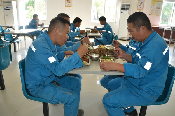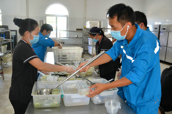 采摘下來(lái)的新鮮龍眼和檸檬很快被送往食堂,食堂師傅們忙碌起來(lái),將飽滿(mǎn)多汁的龍眼剝殼取肉,檸檬切片榨汁,熬制當(dāng)?shù)靥禺a(chǎn)涼粉草。龍眼果肉與檸檬片在清冽礦泉水中舒展,釋放出清甜與微酸的完美協(xié)奏;涼粉草熬制的“北流涼粉”,凝凍如墨玉,清涼解暑。天然原料經(jīng)巧手化作兩大消暑佳品——晶瑩剔透的龍眼檸檬水與地道爽滑的“北流涼粉”。冰鎮(zhèn)后的飲品帶著果香與涼意,被后勤人員分裝成杯,及時(shí)送到各崗位。