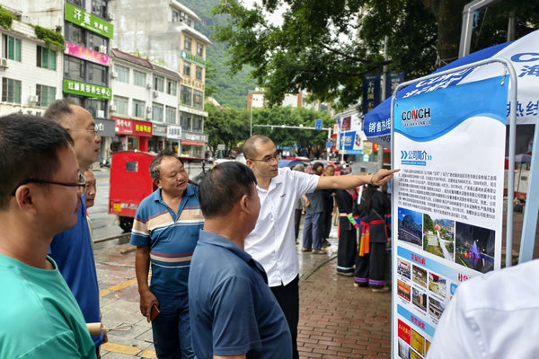 活動(dòng)現(xiàn)場(chǎng),鮮明的橫幅與精美的海報(bào)在雨中格外醒目,迅速抓住了過(guò)往行人的眼球。工作人員熱情地向圍觀的群眾發(fā)放定制宣傳手冊(cè)和單頁(yè),圖文并茂地詳細(xì)展示了海螺水泥的各類產(chǎn)品信息。很快,銷售處與生產(chǎn)品質(zhì)處聯(lián)合派出的專業(yè)技術(shù)團(tuán)隊(duì)便被市民們團(tuán)團(tuán)圍住。