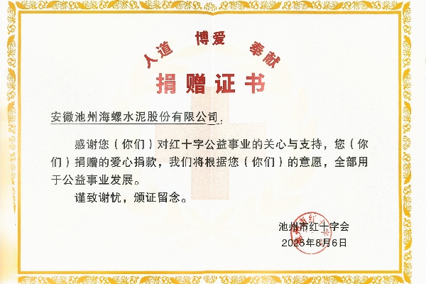 近日,池州海螺收到了一份特別的榮譽(yù)——來自池州市紅十字會(huì)頒發(fā)的榮譽(yù)證書。這份證書,是對(duì)池州海螺在2025年池州市“5.8人道公益日”活動(dòng)期間的積極組織的暖心見證與誠摯謝意。