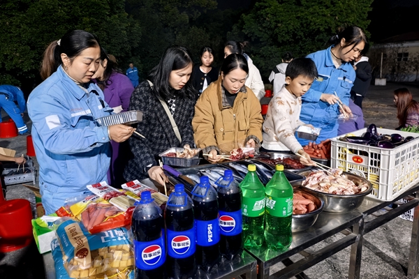 夕陽西下,廣場上炊煙裊裊升起,多個(gè)燒烤爐同時(shí)開火,瞬間煙火氣升騰,香氣彌漫開來。平日里在工作崗位上嚴(yán)謹(jǐn)細(xì)致的同事們,此刻化身“燒烤大師”,大家分工協(xié)作,有的嫻熟地翻動(dòng)著肉串、雞翅、香腸,有的精心調(diào)配著醬料,有的負(fù)責(zé)傳遞美食。現(xiàn)場歡聲笑語,一串串燒烤,一杯杯飲料,傳遞的不僅是美味,更是同事間深厚的情誼與關(guān)懷。大家圍坐在一起,暫時(shí)放下工作的繁忙,分享著美食,暢談著生活趣事和家庭瑣事,疲憊與壓力隨著縷縷炊煙,悄然消散在晚風(fēng)中。