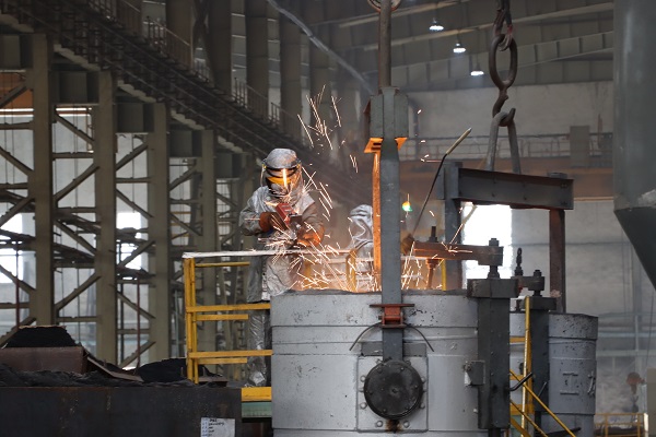 8月17日清晨,海川裝備公司180輥壓機(jī)軸承座澆注生產(chǎn)作業(yè)正在緊張有序地進(jìn)行中,為了保證這個(gè)重達(dá)近10噸的“大家伙”最終的澆注質(zhì)量,鑄造分廠澆注工程國強(qiáng)正在和工友們進(jìn)行著最后的測(cè)溫工作,厚重的鋁箔防火隔熱服內(nèi),汗水順著皮膚不斷滑落,而他們依舊全神貫注,他說:“鋼包測(cè)溫是澆注工序的最后一項(xiàng)重要工作,必須保證每個(gè)動(dòng)作規(guī)范到位,心靜自然涼,專注在手上,也就感覺不到熱了?!保▍雾嵶?攝)