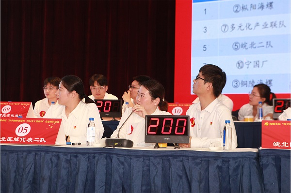 思想之光照耀奮進路,時代偉力領航新征程。為進一步檢驗各基層黨組織主題教育工作成效,把學習貫徹習近平新時代中國特色社會主義思想和黨的二十大精神引向深入,9月27日下午,海螺水泥舉辦了“深學細悟強黨性 篤行實干建新功”黨建知識競賽,喜迎新中國成立74周年。共有寧國水泥廠代表隊、樅陽海螺代表隊、省內(nèi)多元化產(chǎn)業(yè)聯(lián)隊等10支代表隊參加比賽,相關單位負責人和員工代表200多人現(xiàn)場觀賽。公司領導劉田田同志作了動員講話。