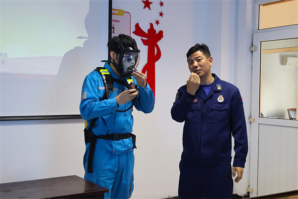 安徽蕪湖,海螺水泥部室員工認(rèn)真參與火災(zāi)事故應(yīng)急演練,鏡湖區(qū)消防救援大隊(duì)的消防員現(xiàn)場(chǎng)向大家講解過濾式自救呼吸器、緩降器、消火栓等應(yīng)急器材的使用方法。