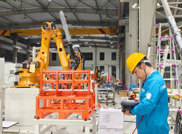 海螺中南機(jī)器人調(diào)試工程師朱露在廠房對(duì)工業(yè)機(jī)器人進(jìn)行點(diǎn)位調(diào)試和程序測(cè)試,他說(shuō):“專(zhuān)業(yè)技能為矛,嚴(yán)謹(jǐn)態(tài)度為盾,作為一名科技工作者,在沖刺年度目標(biāo)任務(wù)時(shí)要爭(zhēng)出“人生能有幾回搏”的決心和毅力。”