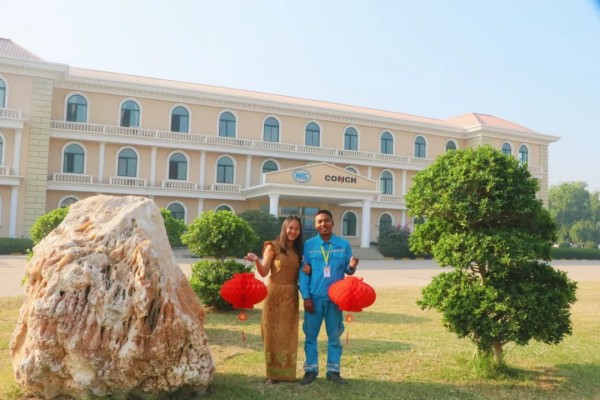 大家好!我是緬甸海螺吞林昂,這是我的妻子蘇桑達(dá),我們都在緬甸海螺工作,這些天公司廠區(qū)內(nèi)掛燈籠、貼福字,到處洋溢著歡樂、喜慶的氛圍,像緬甸過潑水節(jié)一樣隆重。我們在緬甸海螺給大家拜年了,祝大家新春蛇年喜氣揚(yáng)、工作順利事業(yè)昌!我經(jīng)常聽同事說,中國有一句俗話,“不是一家人、不進(jìn)一家門”,家庭如此、公司也是如此,我相信只有公司發(fā)展好,員工才能生活的更好。作為緬甸海螺大家庭的一員,新的一年讓我們一起努力,祝福海螺未來更加美好!