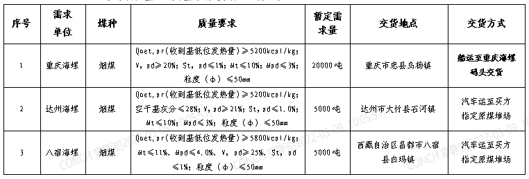 達(dá)州海螺報價要求為一票制汽運(yùn)至買方原煤堆場交貨價(含13%增值稅),賣方負(fù)責(zé)到廠卸貨到買方指定地點;