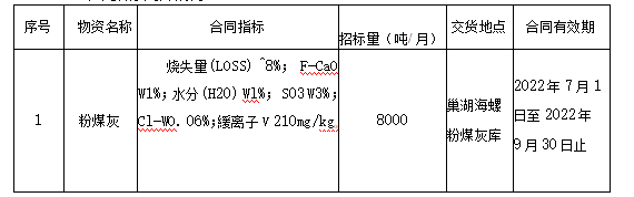 根據(jù)我公司生產需求,本著“公開、公平、公正”的原則, 擬對2022年三季度粉煤灰需求粉煤灰進行公開招標,為進一步 體現(xiàn)公開、公平、公正的原則,歡迎具備條件的單位參加,現(xiàn)將 招標相關事宜公告如下: