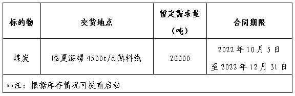 為做好我公司2022年煤炭采購(gòu)工作,滿足生產(chǎn)需要,本著“公開(kāi)、公平、公正”的原則,擬對(duì)煤炭直供渠道供貨進(jìn)行公開(kāi)招標(biāo),現(xiàn)將招標(biāo)采購(gòu)信息發(fā)布如下: