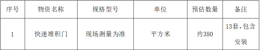 根據(jù)公司關(guān)于骨料發(fā)運及輔材堆棚揚塵治理要求,減少揚塵,根據(jù)水泥分廠和制造分廠申請,經(jīng)公司辦公會研討決定并上報股份公司審批同意后,擬對水泥分廠和制造分廠骨料裝車發(fā)運及輔材堆棚共安裝13套堆積門。為做好公司堆積門材料采購工作,為進一步體現(xiàn)公平、公正、公開的原則,拓寬采購渠道,提高采購質(zhì)量,現(xiàn)將招標(biāo)相關(guān)信息公告如下: