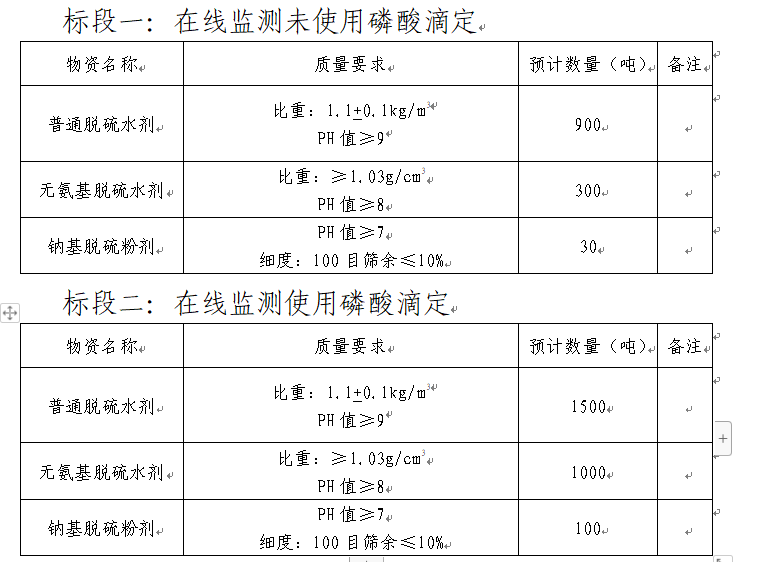 3.質(zhì)量指標(biāo):滿(mǎn)足國(guó)家化工合格品相關(guān)質(zhì)量控制標(biāo)準(zhǔn),產(chǎn)品對(duì)設(shè)備無(wú)腐蝕,對(duì)熟料質(zhì)量和正常生產(chǎn)無(wú)影響。同時(shí)預(yù)計(jì)招標(biāo)人將在2024年2月份開(kāi)始使用在線(xiàn)監(jiān)測(cè)磷酸滴定法,要求中標(biāo)單位提前做好相關(guān)準(zhǔn)備,屆時(shí)收到招標(biāo)人正式通知后馬上啟動(dòng)。