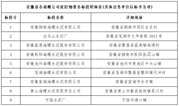 1.標(biāo)的內(nèi)容:省內(nèi)區(qū)域各海螺公司廢舊物資。