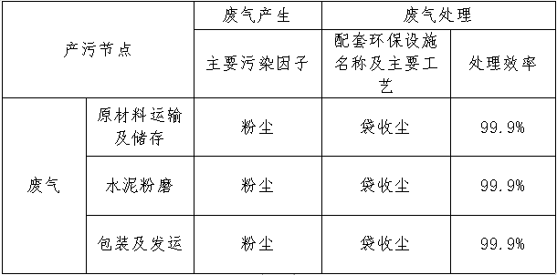 黃山海螺水泥有限責(zé)任公司具體廢氣產(chǎn)生及處置、排放情況如表3所示。