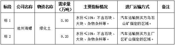 根據(jù)我公司生產(chǎn)經(jīng)營及工程建設(shè)需要,現(xiàn)擬開展2024年度池州海螺綠化土采購招標(biāo),為規(guī)范物資采購行為,嚴(yán)格遵循公平、公正、公開的原則,現(xiàn)將招標(biāo)采購信息發(fā)布如下: