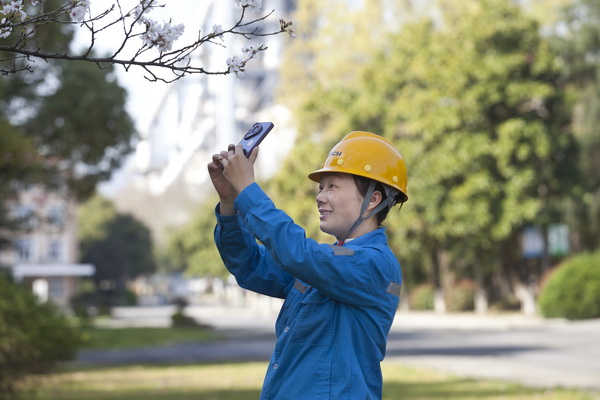 工業(yè)綠廊變身打卡勝地。清晨六點(diǎn)多,晨光穿透薄霧灑向廠區(qū)櫻花路,“錦繡大道”邊的十余樹櫻花已披上云霞般的輕紗。愛(ài)美的攝影人特意提前一個(gè)多小時(shí)到崗,手持相機(jī)捕捉光影變幻,路過(guò)的員工禁不住拿出手機(jī),拍攝這動(dòng)人的春光,年輕的女職員們,在櫻花樹下,在綠草地上,擺出各種造型,誓要將美麗的春光留下。