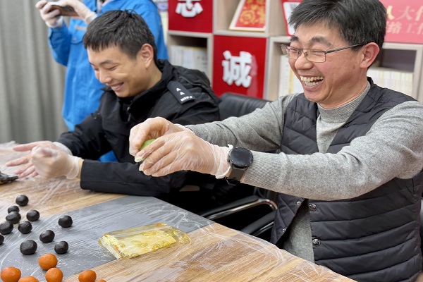 青團(tuán)制作現(xiàn)場(chǎng)同樣充滿歡聲笑語。雪白的糯米粉與青翠的艾草汁在指尖交融,各種各樣的餡料被溫柔包裹。老人們嫻熟的手法讓年輕志愿者驚嘆不已,而志愿者們創(chuàng)新的造型設(shè)計(jì)也贏得陣陣稱贊。陸大爺捧著熱乎乎的青團(tuán)感慨:“這味道讓我想起小時(shí)候,一大家子圍著灶臺(tái)忙活的場(chǎng)景?!?/span>