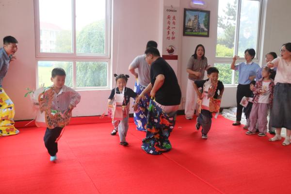 六一兒童節(jié)專屬的趣味游戲區(qū)同樣熱鬧非凡。“大人袋鼠跳+兒童劃龍船”游戲前,孩子們排著整齊隊伍,大聲呼叫,為爸爸媽媽加油打氣,“爸爸,快點跳,有人要追上你了……”“媽媽,加油,你是最厲害的……”, 爸爸媽媽們聽到孩子們的吶喊,牟足了勁往前跳,孩子們接棒成功后,飛快的跑了出去,贏得了周圍的小伙伴們陣陣歡呼。家長和孩子們默契配合,完成挑戰(zhàn),在游戲中增進了親子感情。