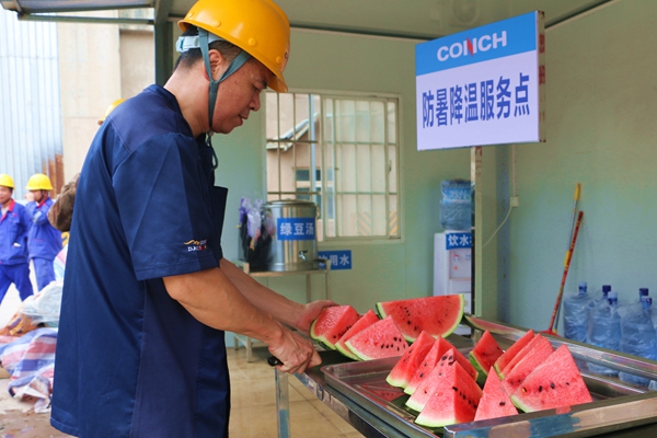 “大家辛苦了!一定要注意勞逸結(jié)合?!惫?/span>慰問組反復(fù)叮囑各班組長科學(xué)調(diào)配作業(yè)時間,礦山分廠爆破安全員熊師傅接過鹽汽水,臉上洋溢著笑容:“公司這么關(guān)心我們,這份清涼來得太及時了,我們一定加倍努力,保障生產(chǎn)安全高效!”