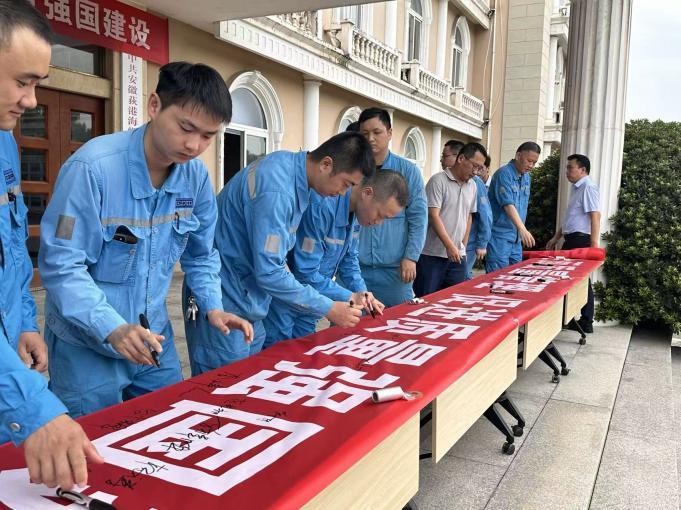全員動(dòng)起來,質(zhì)量強(qiáng)起來。9月1日,公司辦公樓前已是人頭攢動(dòng)。在公司領(lǐng)導(dǎo)班子的帶領(lǐng)下,各部門負(fù)責(zé)人與員工代表精神抖擻,共同在“加強(qiáng)全面質(zhì)量管理 促進(jìn)質(zhì)量強(qiáng)國(guó)建設(shè)”的橫幅上鄭重簽名承諾。一筆一劃,標(biāo)志著荻港海螺質(zhì)量月活動(dòng)隆重開幕。